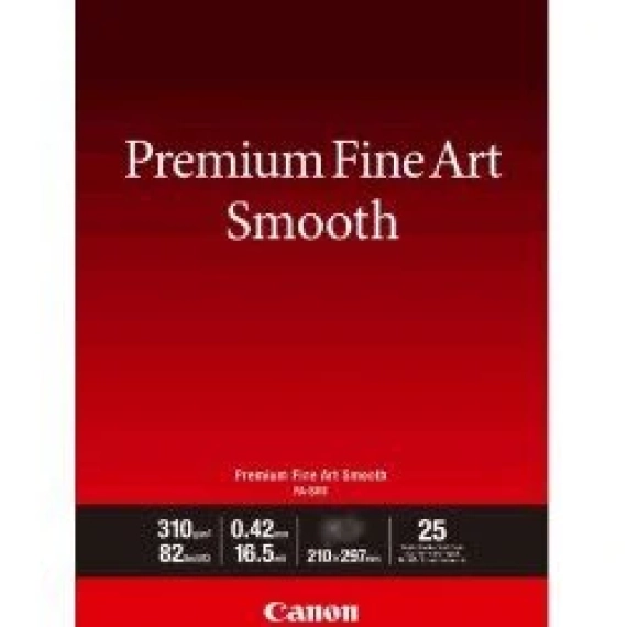 A2 Premium Fine Art Smooth FA-SM1 Et profesjonelt kunstpapir av høy kvalitet for Canons profesjonelle blekkskrivere som gir bilder med overlegen svart tetthet, presise toner i mørke områder og et bredt fargespekter. OverflatefinishMatt klutepapir ISO-lysstyrke85 Viktige funksjoner 310 g/m²Vekt i gram per kvadratmeter 0,42 mmTykkelse i millimeter