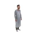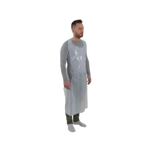 Engangs plastforkle med nakkebånd og knytebånd i ryggen, pakket i stor kartong. Brukes til å beskytte brukeren der det trengs en høy standard for hygiene, f.eks. i helsesektoren, i næringsmiddelindustrien eller ved produksjon eller pakking av produkter. - Plasten er godkjent til kontakt med næringsmidler opptil +40 grader uten tidsbegrensning, likevel ikke syreholdige matvarer, da materialet nedbrytes ved temperaturer over 70 °C. - Engangsforkleet er fremstilt i LDPE med en tykkelse på 30my - Mål (BxH): 80 x 130 cm