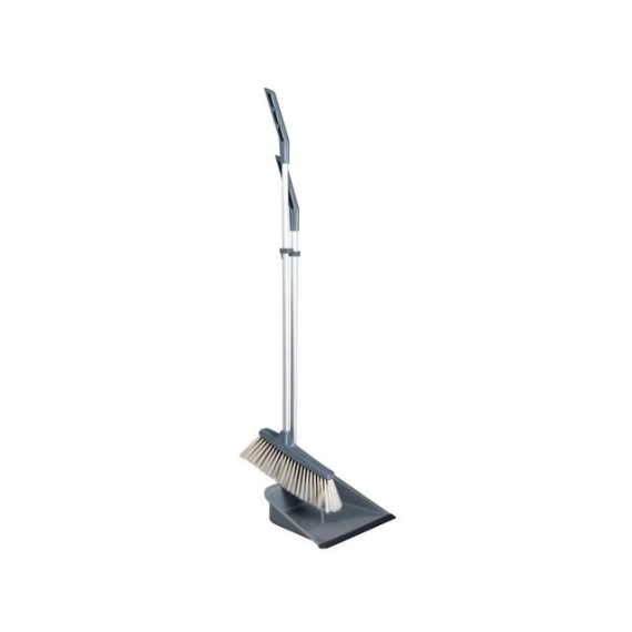 Feiesett som effektivt feier opp smuler og skitt. - Kommer med gummilist - Farge: grå - Materiale: metall - Størrelse: 25x22x80cm
