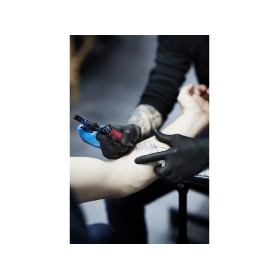 Sort undersøkelseshanske, Abena Classic Sensitive, i størrelse small Elastisk undersøkelseshanske uten pudder, som former seg etter hånden under bruk og har mikroteksturerte fingerspisser. Kan brukes til en rekke oppgaver som rengjøring, stell, mathåndtering, laboratorier, legemiddelhåndtering, cytostatika og hormonkremer. Inneholder ingen lateksproteiner og er derfor trygt å bruke ved lateksallergi. - Størrelse: Small - Antall hansker i pk: 100 stk - Pudderfri - Usteril - Farge: sort - Mikroteksturert fingerspisser - Med rullekant - Egnet til håndtering av matvarer - CE-merket - EN 455, EN 374, EN 420 ++ - Holdbarhet: 5 år fra produksjonsdato - Tykkelse håndflate: 0,06mm (+/- 0,02) - Tykkelse fingrene 0,08mm (+/- 0,02)