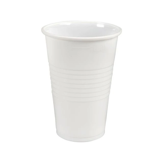 Hvite antistatiske drikkebeger med riller, til alle typer matvarer. Begrene er laget av PP-plast, og går ikke lett i stykker. - Materiale: Polypropylen - Temperaturområde -40°C til +40°C - Varmt innhold med temperatur inntil +100°C i max 2 timer. - Høyde: 9,8cm - Diameter: 7cm - Ikke egnet for bruk i stekeovn eller mikrobølgeovn