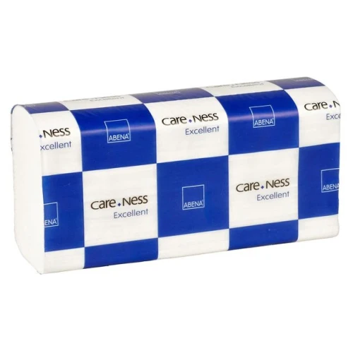 Tørkeark Care-Ness Excellent 100% nyfiber. Maksimal sugeevne. Hygienisk alternativ til håndtørking. Smart og elegant forpakning. - Antall lag: 2-lags, nonstop - Foldemetode: Z-fold - Lengde/dybde: 24cm - Bredde: 23,5c - Foldningsdybde: 8 cm - Farge: Hvit