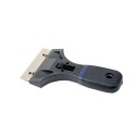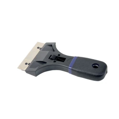 Klikkskrape med gummiert håndtak. Ekstra blader må kjøpes i tillegg. Bredde: 9cm Vekt: 62g