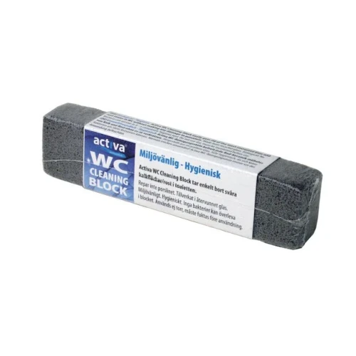 Blokken fjerner tunge kalkavleiringer, mugg og rust i toalettseter og i vasker hvor kjemikalier ikke hjelper. Ingen bakterier kan overleve i blokken, noe som gjør den til et hygienisk verktøy. - Laget av pimpstein - Riper ikke når den brukes våt - Leveres uten håndtak