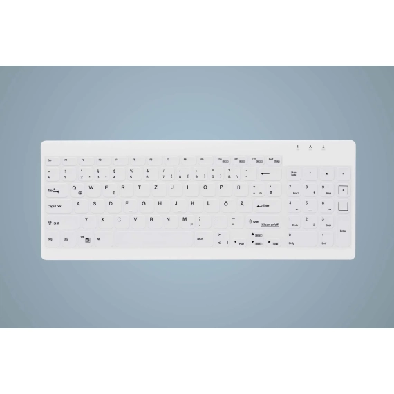 The AK-C7012 is a high Quality, highly reliable notebook style PC Keyboard. The purification and disinfection capacity makes it a perfect fit in Hospitals and at practitioners, microbiological laboratories as well as industrial environments. The Silicone key membrane protects the key field against ingress of dirt and fluids. The AK-C7012 impresses with precise Key actuation and accurate Key guidance. It is highly recommendable for heavy Duty type writing in dirt and Hygiene critical operations.