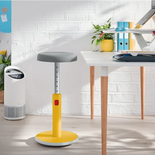 Leitz Ergo Active Sit Stand balansestol gir fleksibiliteten til å bevege deg mellom å sitte og stå mens du jobber, oppmuntrer til muskelbevegelse, forbedrer holdningen og øker energinivået. Har en avrundet base for å oppmuntre til aktiv bevegelse ved å svinge og gynge mens du jobber for å styrke ryggen. Høyden kan enkelt justeres mellom 45-79 cm og den stående stolen forblir stabil i alle høyder. Komfortabel og praktisk, denne ergonomiske balansestolen har et pustende, 3D luftnettdekket skumsete og en sklisikker base som ikke vil skade gulvet. Med sin minimalistiske design og matte finishfarger, vil denne stilige stolen forbedre helsen og velværet ved å enkelt skape det perfekte aktive arbeidsoppsettet. Kombiner med andre Leitz Ergo-produkter for et innbydende og fleksibelt arbeidsområde som holder deg i gang hele dagen. - Stilig og ergonomisk designet balansestol for å holde deg aktiv hele dagen - Bytt mellom sittende og stående for å fremme muskelbevegelse og forbedre holdningen -