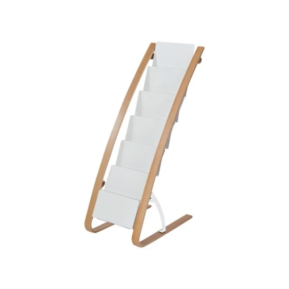 Stilrent og mobilt brosjyrestativ med 6 rom for dokumenter og magasiner Dette gulvstativet fra ALBA i hvitt tre gir seks rom for organisering av brosjyrer, dokumenter eller magasiner. Med solid konstruksjon og mobil design er det enkelt å flytte og tilpasse til ethvert miljø. - 6 rom for dokumenter og magasiner - Enkel mobilitet med hjul - Materiale: Tre og ABS - Høyde: 93cm, bredde: 34cm, dybde: 50cm