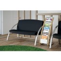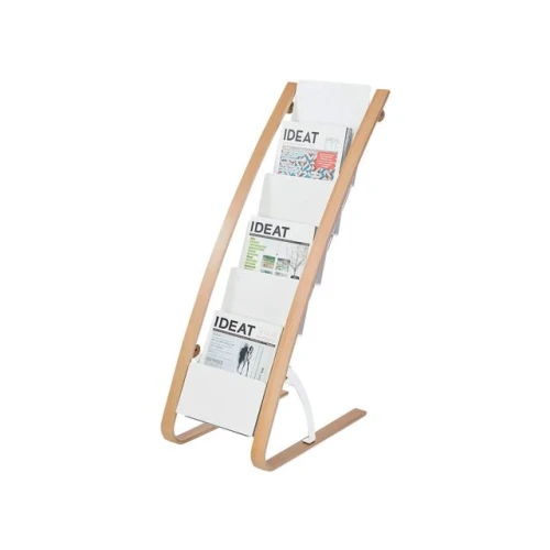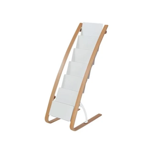Stilrent og mobilt brosjyrestativ med 6 rom for dokumenter og magasiner Dette gulvstativet fra ALBA i hvitt tre gir seks rom for organisering av brosjyrer, dokumenter eller magasiner. Med solid konstruksjon og mobil design er det enkelt å flytte og tilpasse til ethvert miljø. - 6 rom for dokumenter og magasiner - Enkel mobilitet med hjul - Materiale: Tre og ABS - Høyde: 93cm, bredde: 34cm, dybde: 50cm