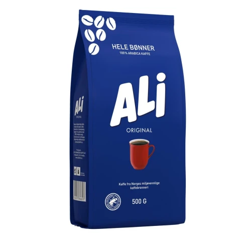ALI Kaffe har en oppkvikkende effekt, samtidig som den er rund og mild, med god fylde og fin aroma. ALI Kaffe består av 100% Arabica-bønner fra Brasil og Colombia som dyrkes på 1.000 – 1.600 meters høyde, hvor det er perfekt jordsmonn og klima for kaffedyrking. Ved å kombinere kaffebønner fra de to landene får vi fram en perfekt balanse mellom god fylde, fin aroma og lett syrlighet som gir den gode smaken som kjennetegner ALI Kaffe. ALI Kaffe blir produseres i Norge. Kaffebrenneriet drives med 100% fornybar energi. - Hele bønner