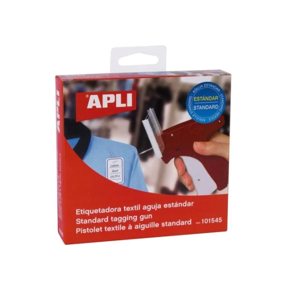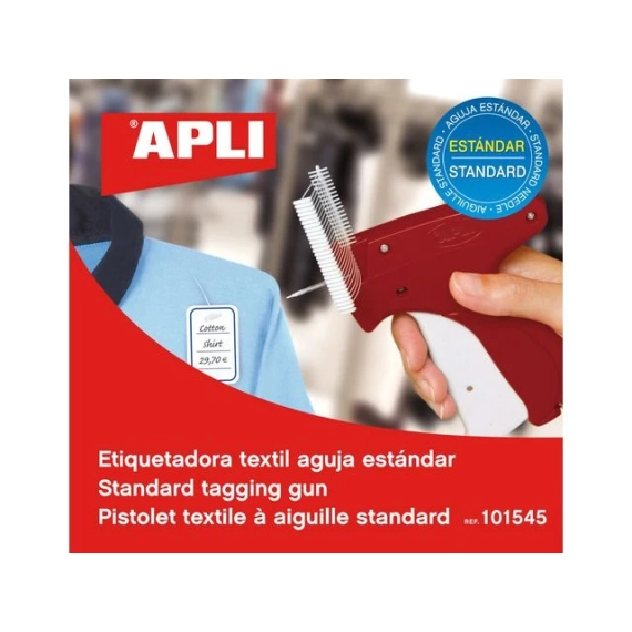 Standard merkepistol. Ideell for å merke alle slags stoffer på en rask og presis måte uten å bruke lim eller skade tekstilen. Spesielt designet for tykke stoffer. Inkluderer en beskyttelseshette for nålen og en håndleddsstropp. Kompatibel med APLI-nåler modell 101570 og merkefester APLI-modeller 154110 og 154112.. - Pakken inkluderer: - - 1 standard tekstilpistol - - 1 standard nål