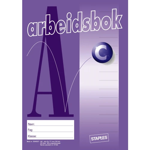 Staples arbeidsbok i A4, ved oppslag av boken er én side ulinjert og én side linjert. Treholdig papir i 80 g/m² kvalitet. - Format: A4, 210 mm x 297 mm - Antall ark: 24 - Sertifisering: Svanemerket