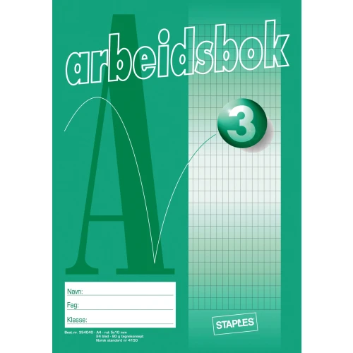 Staples arbeidsbok A4 med 5 x 10 mm ruter. Produsert i 80 g/m² svanemerket treholdig papir (tegnekonsept). - Format: A4, 210 mm x 297 mm - Antall ark: 24 - Sertifisering: Svanemerket
