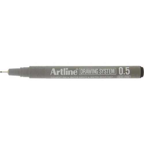 Tegnepenn med metalinnkapslet plastspiss med en spissbredde på 0,5 mm. Vannfast etter at den har tørket, blekes ikke, vannbasert tusj uten Xylen. Farge: Sort.