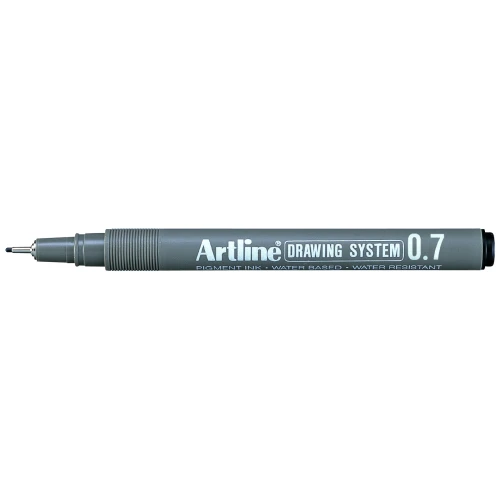 Blyant med metallkapslet plastspiss med en spissbredde på 0,7 mm. Vanntett etter tørking, blekes ikke, vannbasert pigmenttusj uten Xylen. Farge: Svart.