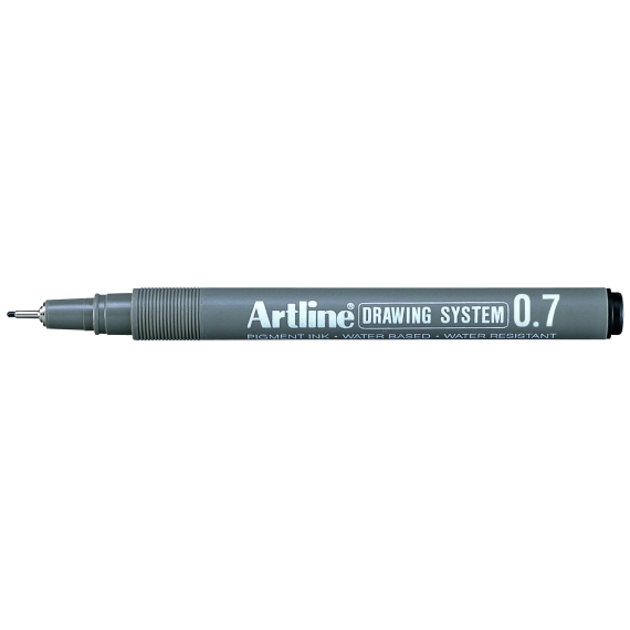 Blyant med metallkapslet plastspiss med en spissbredde på 0,7 mm. Vanntett etter tørking, blekes ikke, vannbasert pigmenttusj uten Xylen. Farge: Svart.
