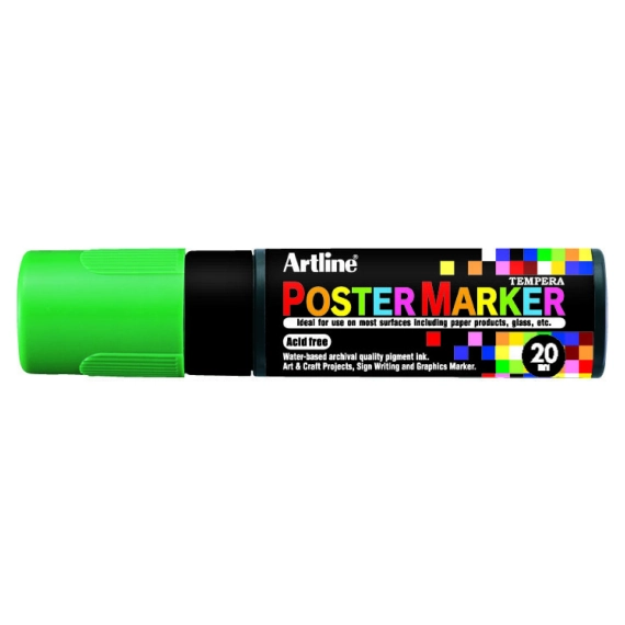 Opaque Water based Poster paint, ideal for posters, menu boards and sign writing. Highly opaque pigment ink with superior water and fade resistant performance suitable for use on card, metal, plastic, glass, wood, rubber, stone, etc. Allows overpainting without bleed-through. Easily washes off non-porous surfaces. Acid free. Writing width: 20 mm. Ideal for headings, underlining and letter shadowing.