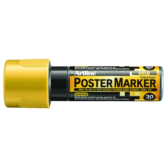 Opaque Water based Poster paint, ideal for posters, menu boards and sign writing. Highly opaque pigment ink with superior water and fade resistant performance suitable for use on card, metal, plastic, glass, wood, rubber, stone, etc. Allows overpainting without bleed-through. Easily washes off non-porous surfaces. Acid free. Writing width: 30 mm. Ideal for banners and impact attention-grabbing text.