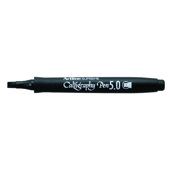 Kalligrafipenn med fiberspiss og spissbredde på 5 mm. Vannbasert pigmenttusj uten Xylen. Farge: Sort