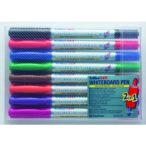 Artline Whiteboardpenn 541T 2i1 Sett med 8 farger