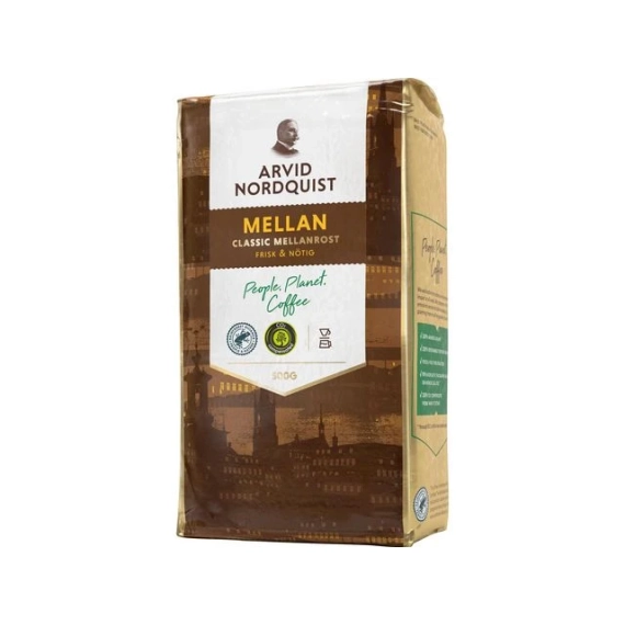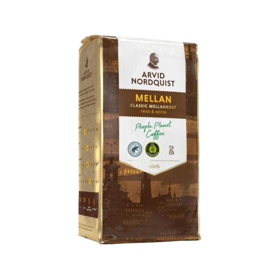 Filtermalt mellombrent kaffe, en klassiker fra Arvid Nordquist. Elegant smak med nøttaktige toner. Lang og frisk ettersmak. Filtermalt kaffe av 100% Arabicabønner. Intensitet 6/10, og brenning 5/10. - Malingsgrad: Filtermalt - Medium brent