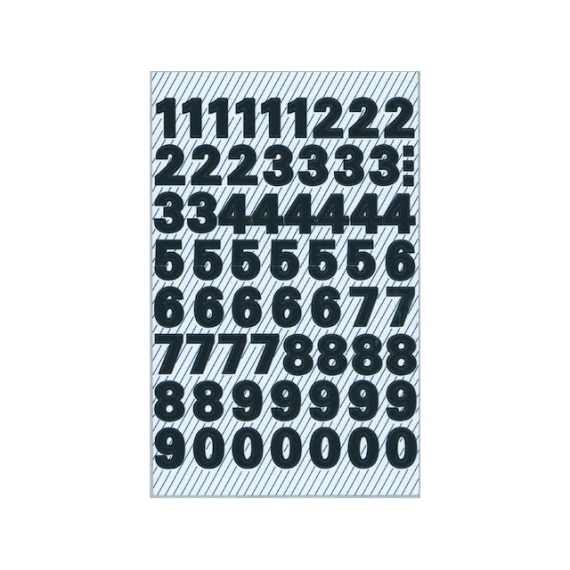 Tall med sterk klebeevne. Velegnet for glatte overflater, og kan også benyttes utendørs. Sorte vannfaste tall til å merke og organisere på kontoret, hjemme og på skolen. Etikettene kan brukes på beholdere eller bøker, og til og med utendørs som f.eks. på postkasser. - Pakken inneholder to ark med 65 tall/tegn på hvert ark. - Stil: Univers medium, 38 pkt./9,5 mm.