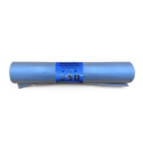 Denne firkantsekken er produsert av 100% PCR plast. - Tykkelse: 65my - Størrelse: 70 x 110cm - Farge: transparent - Kapasitet: ca. 100 liter