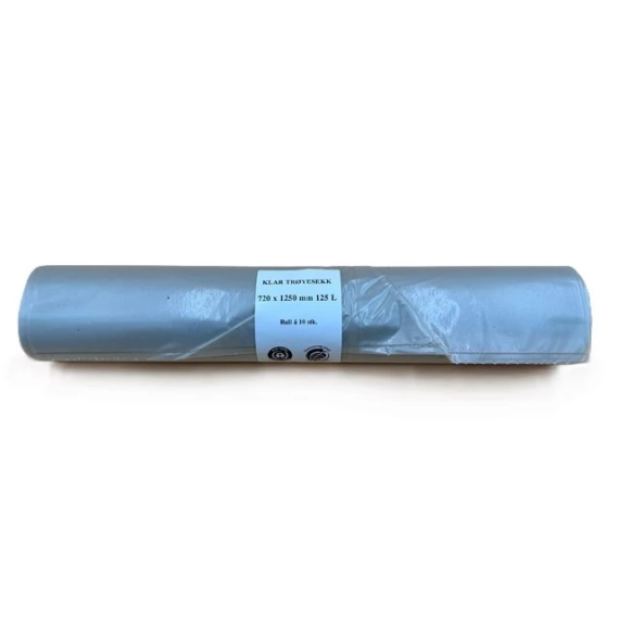 Denne knytesekken er produsert av 100% PCR plast. - Tykkelse: 55my - Størrelse: 72 x 125cm - Farge: transparent - Kapasitet: ca. 125 liter
