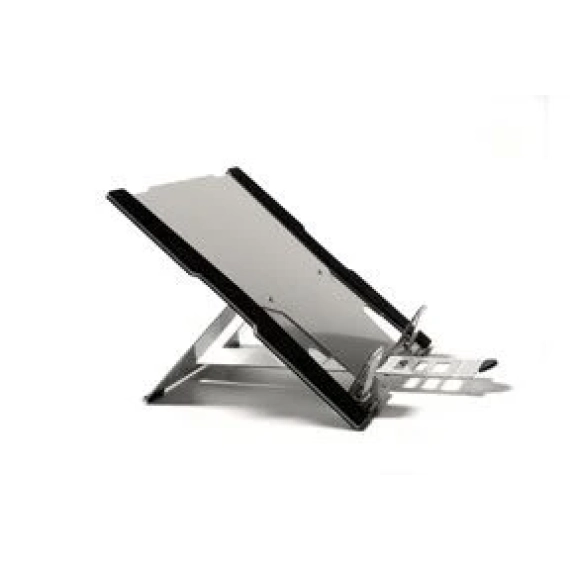 Stativ til laptop i lettvektsaluminium med gummi/anti-slip føtter. Enkel å justere i 7 forskjellige høydeinnstillinger; 9-22cm. Kan klappes sammen og kan lett tas med overalt. Passer til notebook opp til 16,6”. Dimensjoner: 6 x 275 x 300 mm. Vekt: 320 g. Se demo