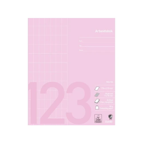 Bantex arbeidsbok i format 170 x 210 mm Hver linjeringstype har forskjellig farge, slik at det er enkelt å gjenkjenne den linjeringstypen som elevene pleier å bruke - Svanemerkede og Ecolabel-sertifiserte hefter - Svanemerket, NS4150 - 24 ark - Vekt: 80 g