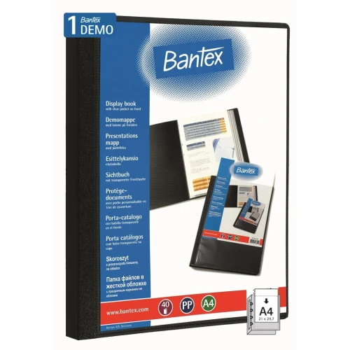 Demonstrasjonsmappe med klar A4-lomme på forsiden. Både omslag og lommer er fremstilt i slitesterk PP-folie.