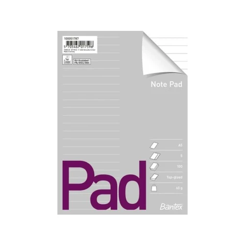Bantex A5 linjert kladdeblokk – førsteklasses for kladde- og notatpapir. Bantex A5 linjert kladdeblokk er et førsteklasses standardprodukt for kladde- og notatpapir. Perfekt størrelse for bærbare notater. - Størrelse: A5 - Type: Linjert - Papirvekt: 60g - Binding: Topplimt