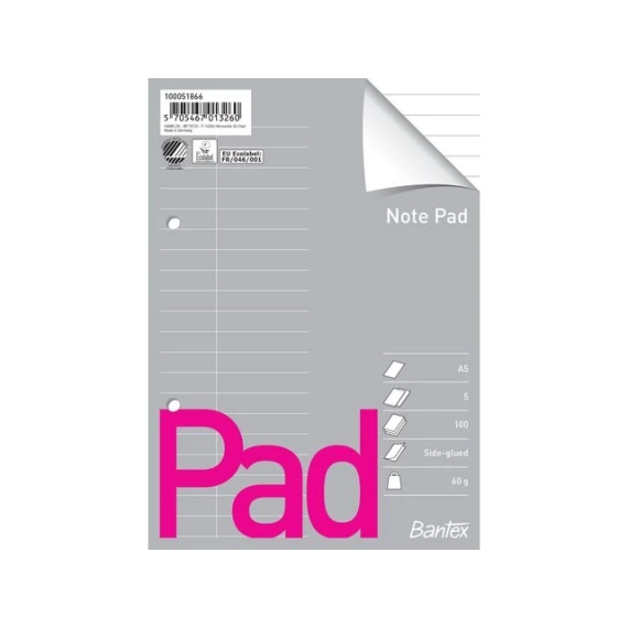 Bantex Notatblokk A5 sidelimt linjert(5)
