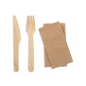 Hygienepakket trebestikk. Singelpakket pose med gaffel, kniv og serviett. Bestikket har en barriere for å unngå tresmak når du spiser. Mål: 165mm kniv, 160mm gaffel.