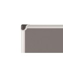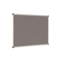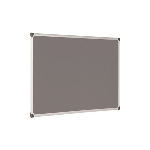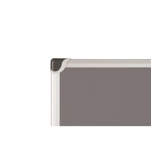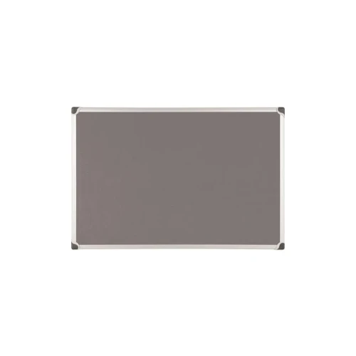 Oppslagstavle i grå filt med ramme av børstet aluminium og ABS plasthjørner Kan monteres horisontalt og vertikalt Leveres med skruer, plugger og lokk for montering 90x120 cm