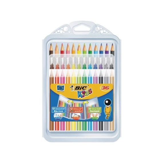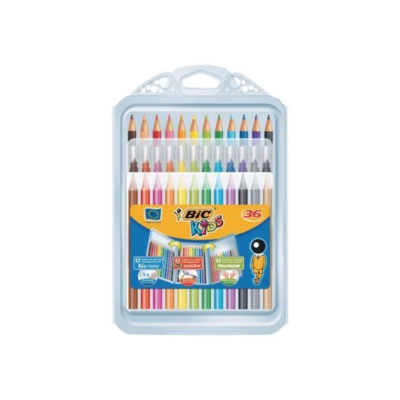 BIC KiDS sett med fargeblyanter, fargestifter og tusjer i assorterte farger.