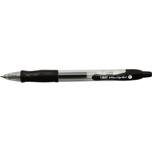 BIC® Velocity er utmerket for daglig skriving. Det komfortable polstrede gummigrepet gir deg en stø hånd å skrive med, mens gelblekksystemet sikrer en ren og jevn skrift. Pennens middels tykke spiss gir jevne linjer og sørger for at notatene du tar på skolen eller i møter, fremstår som rene og pene. Lommeklipsen som er festet til pennen, gjør den lett å bære med seg – du kan ha pennen på deg til enhver tid rett og slett ved å feste den til en skjortelomme, notatblokk, mappe eller lignende.