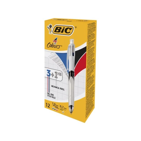 Revitaliser skriveopplevelsen din med BIC 4 farger 1,0 HB 0,7 sølv - 3 kulepenner og en blyant i én praktisk penn! Med ett klikk får du tilgang til fire forskjellige skriveverktøy. Denne 4-i-1-pennen tilbyr klassisk blå, sort og rød blekk, sammen med en allsidig HB-blyant. De 1,0 mm kulepennene er verdenskjente for sin evne til å skrive en linje opptil 2 km lang, og de gir den jevne, pålitelige blekkstrømmen du alltid har verdsatt. Blyanten med 0,7 mm stift er perfekt for detaljerte notater og skisser, og den har til og med en innebygd viskelær for feilfri korrigering. Når nivåene begynner å synke, er det enkelt å fylle på både blekk og blystifter - skru bare fra hverandre pennkroppen, fjern patronen og sett inn en ny. - Fire skriveverktøy i én penn: Blå, sort, rød kulepenn og HB-blyant - Kulepennene kan skrive opptil 2 km lang linje - Jevn, pålitelig blekkstrøm - 0,7 mm blyantstift for detaljerte notater og skisser - Innebygd viskelær for feilfri korrigering - Enkelt å fylle på både blekk og blystifter når nivåene synker - Praktisk og plassbesparende design - Spissstørrelse: 1,0 mm for kulepenner, 0,7 mm for blyant