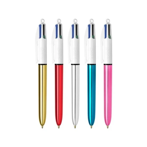 BIC 4 Colours Shine: Fire farger, én penn, uendelige muligheter for kreativ utfoldelse! Opplev den moderne og stilige metallenheten til BIC 4 Colours Shine kulepenn. Denne unike kulepennen har en slank og elegant design som skiller seg ut fra mengden. Med 4 medium kulespisser på 1 mm i blått, sort, rødt og grønt blekk, er den perfekt for en rekke bruksområder, fra skriving og tegning til organisering av notater. Bruk knappene for å bytte farge med ett enkelt klikk, uten å måtte bytte penn. Med en BIC 4 Colours Shine kulepenn har du alltid de riktige fargene for hånden! - Moderne metallisk look som skiller seg ut - 4 medium kulespisser på 1 mm i blått, sort, rødt og grønt blekk - Enkelt bytte mellom farger med knappene, uten å bytte penn - Ideell for skriving, tegning og organisering av notater - Spisstype: Medium, 1,0 mm - Inkludert: 12 kulepenner - Blekkfarger: Blå, sort, rød, grønn