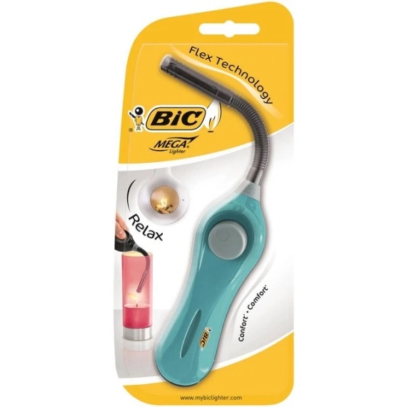 BIC Megalighter Multifunksjonslighter er flott for alle slags bruksområder, med et genialt 6 cm forlengelsesskaft som holder flammen på en kontrollert, trygg avstand. Forlengelsesskaftet er flexibelt og gjør det enkelt å komme til. Design som er enkelt å gripe og som passer godt i hånden din for tenning av komfyrer, peiser, stearinlys og grill. Praktisk lagringskrok og kapasitet på opptil 750 tenninger. / BIC Megalighter Design-flerbrukslighter er flott til alle slags bruksområder med et genialt 6 cm forlengelsesskaft for å holde en kontrollert flamme på trygg avstand. Liten enkelt-grep-design som passer godt i hånden din for å tenne grill, peis, lys og kontrollys. Leveres i flotte fluorescerende farger og har en praktisk lagringsskrok. Holder opptil 750 tenninger. / BIC Megalighter Happy-flerbrukslighteren er flott til alle slags bruksområder med et genialt 6 cm forlengelsesskaft for å holde en kontrollert flamme på trygg avstand. Design som er enkelt å gripe og som passer godt i hånden din for å tenne festlige stearinlys og grilling. og en hendig lagringskrok. Holder opptil 750 tenninger.