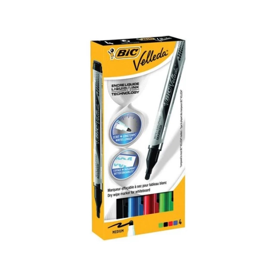 Gi presentasjonene dine en fargeklatt med BIC Velleda whiteboardpenner i assorterte farger. Med BIC Velleda whiteboardpenner kan du skape levende og engasjerende presentasjoner. Disse pennene kommer i assorterte farger, og det flytende blekket gir en jevn skriveopplevelse på whiteboardoverflater. Den brede, runde spissen gjør det enkelt å lage brede linjer og markere viktig informasjon. Uansett om du bruker dem på skolen, på kontoret eller hjemme, vil BIC Velleda whiteboardpenner være et pålitelig verktøy for å formidle dine tanker og ideer på en tydelig og fargerik måte. - Fargerikt flytende blekk for levende presentasjoner - Bred, rund spiss for å lage brede linjer - Ideell for bruk på whiteboardoverflater - 4 penner i assorterte farger for variasjon og kreativitet - Spiss: Bred, rund - Farger: Assortert