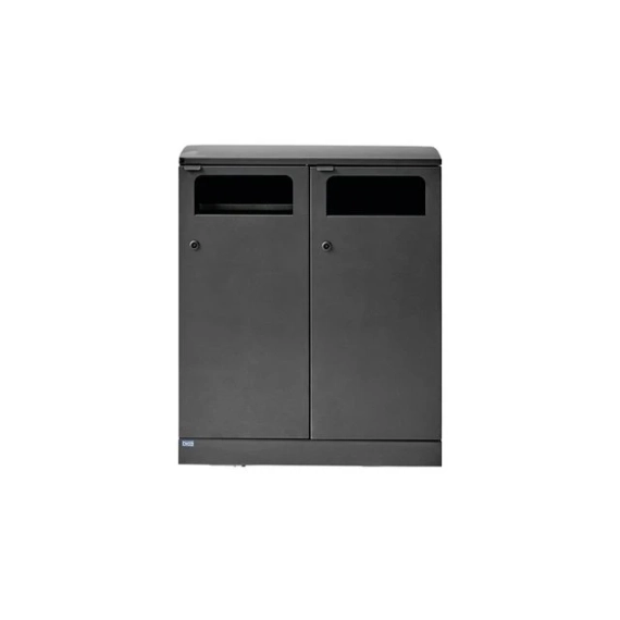 Elegant avfallssystem med 2 inndelinger i stilig og praktisk design. Dette er et fleksibelt avfallssystem fra Bica som sørger for enkel og brukervennlig avfallssortering utendørs. Avfallssystemet er utformet med 2 fraksjoner med sideinngang for enkel avfallssortering. Det er mulig å installere en metallklaff slik at fugler ikke kommer inn i avfallet. Avfallssystemet kommer med integrerte poseholdere, som kan trekkes ut når posen skal skiftes. Avfallssystemet har også inngangsdører for enkel tømming som kan åpnes med nøkkel. Denne Bica-modellen kan kombineres med andre Bica-modeller i samme dybde. FUNKSJONER: Avfallssystemet er utstyrt med inngangsdører for ergonomisk riktig tømming uten tunge løft. Avfallssystemet er utstyrt med en integrert og sterk poseholder, slik at posen holder seg på plass. Den lukkede toppen skjuler også posen, slik at avfallssystemet opprettholder et stilig design. Den kan festes fast i underlaget, slik at den ikke kan flyttes og samtidig låses. DESIGN: For å oppnå lang levetid og minimalt vedlikehold er avfallsbeholderen laget av rustfritt stål. Det stilige designet og de rene linjene gjør den til en avfallsbeholder som naturlig kan integreres i de fleste utendørsmiljøer. Utendørs bruk Farge: Antrasitt Størrelse (H x B x D): 95x80x40 cm Minimum posestr: 82x105 cm