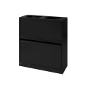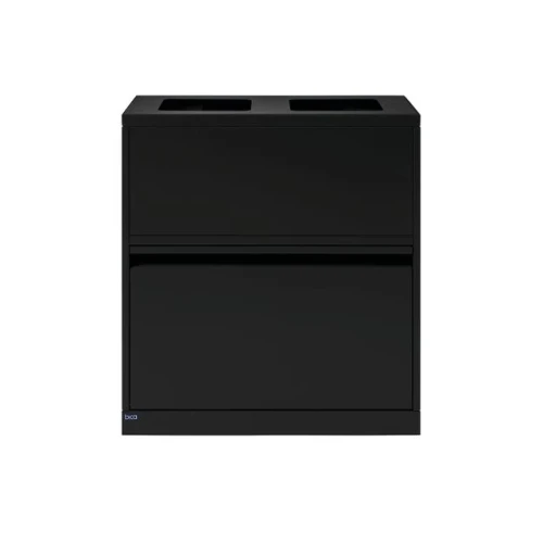Elegant avfallssystem som kan deles i opptil 11 inndelinger i stilig og praktisk design. Dette er et fleksibelt avfallssystem fra Bica som sørger for enkel og brukervennlig avfallssortering på arbeidsplassen. Avfallssystemet er utformet med 2 åpne inntak på toppen med 20 liters innerbeholdere og med en skuff under for innerbeholdere (2x15L og 1x10L følger med). Nedre del av avfallssystemet kan tilpasses etter behov, slik at totalt 11 enheter kan sorteres. Bica Model 880 er absolutt en av leverandørens mest populære modeller. FUNKSJONER Avfallssystemet er utstyrt med skuff med soft close for lydløs og stille lukking. Avfallssystemet leveres med innerbeholdere med håndtak for enkel håndtering ved tømming. Lokket skjuler de indre beholderne og posene, slik at avfallssystemet opprettholder et stilig design. Avfallssystemet er mobilt takket være de monterte hjulene, som er skjult bak sokkelen. DESIGN For å oppnå høy hygiene og minimalt vedlikehold er avfallssystemet laget av pulverlakkert stål. Det stilige designet og de rene linjene gjør det til en avfallsbeholder som naturlig kan integreres i interiøret. Innendørs bruk Farge: Antrasitt Størrelse (H x B x D): 84,5x78x30 cm Minimum posestr: 45x31/ 52x31/ 62x31 cm