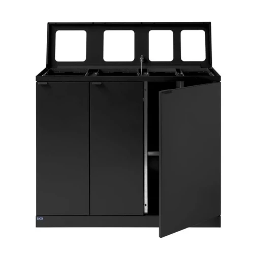 Elegant avfallssystem med 4-6 inndelinger i stilig og praktisk design. Dette er et fleksibelt avfallssystem fra Bica som sørger for enkel og brukervennlig avfallssortering på arbeidsplassen. Avfallssystemet tillater differensiert volum i en integrert løsning, noe som er praktisk dersom du trenger sortering i ulike mengder. Det er montert hyller i fraksjonen 2x45 liter, som gjør det mulig å sette inn innerbeholdere av plast for skarpt avfall, der posen kan gå i stykker. FUNKSJONER: Avfallssystemet er utstyrt med frontdører med soft close for ergonomisk riktig tømming uten tunge løft. Avfallssystemet er utstyrt med integrerte og sterke poseholdere, slik at posen holder seg på plass. Det er montert et gasspjeld i lokket for lydløs og stille lukking, og lokket skjuler også posene, slik at avfallssystemet holder et stilig design. Avfallssystemet er mobilt takket være de monterte hjulene, som er skjult bak sokkelen. DESIGN Alle modellene i Bica S30-serien kan tilpasses og kombineres etter behov ved hjelp av kraftige magneter. For å oppnå høy hygiene og minimalt vedlikehold er avfallssystemet laget av pulverlakkert stål. Det stilige designet og de rene linjene gjør det til en avfallsbeholder som naturlig kan integreres i interiøret. Innendørs bruk Serie: S30 Farge: Antrasitt Størrelse (H x B x D): 84,5x99,5x30 cm Minimum posestr: 45x90/ 40x90/ 40x55 cm