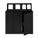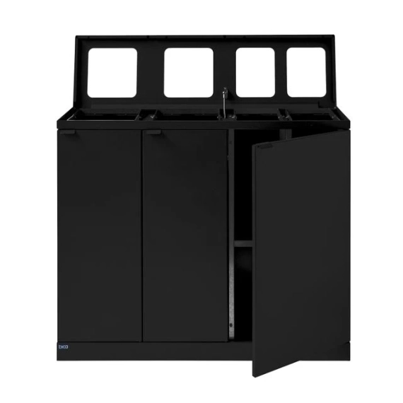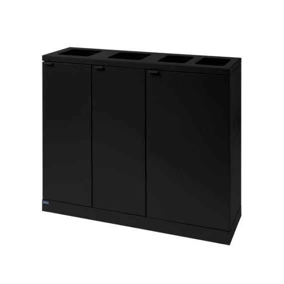 Elegant avfallssystem med 4-6 inndelinger i stilig og praktisk design. Dette er et fleksibelt avfallssystem fra Bica som sørger for enkel og brukervennlig avfallssortering på arbeidsplassen. Avfallssystemet tillater differensiert volum i en integrert løsning, noe som er praktisk dersom du trenger sortering i ulike mengder. Det er montert hyller i fraksjonen 2x45 liter, som gjør det mulig å sette inn innerbeholdere av plast for skarpt avfall, der posen kan gå i stykker. FUNKSJONER: Avfallssystemet er utstyrt med frontdører med soft close for ergonomisk riktig tømming uten tunge løft. Avfallssystemet er utstyrt med integrerte og sterke poseholdere, slik at posen holder seg på plass. Det er montert et gasspjeld i lokket for lydløs og stille lukking, og lokket skjuler også posene, slik at avfallssystemet holder et stilig design. Avfallssystemet er mobilt takket være de monterte hjulene, som er skjult bak sokkelen. DESIGN Alle modellene i Bica S30-serien kan tilpasses og kombineres etter behov ved hjelp av kraftige magneter. For å oppnå høy hygiene og minimalt vedlikehold er avfallssystemet laget av pulverlakkert stål. Det stilige designet og de rene linjene gjør det til en avfallsbeholder som naturlig kan integreres i interiøret. Innendørs bruk Serie: S30 Farge: Sort Størrelse (H x B x D): 84,5x99,5x30 cm Minimum posestr: 45x90/ 40x90/ 40x55 cm