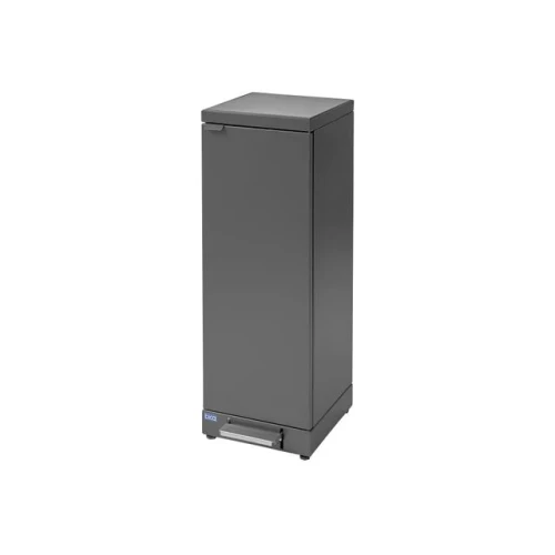 Elegant og praktisk avfallsbeholder i stilig design. Dette er en fleksibel avfallsbeholder fra Bica som sørger for enkel og brukervennlig avfallssortering på arbeidsplassen. Avfallsbeholderen er utformet med et praktisk lokk, som åpnes ved hjelp av den praktiske fotpedalen slik at håndfri betjening er sikret. Hensikten med lokket er å minimere luktplager og hindre bananfluer ved sortering av matavfall. En virkelig smart løsning hvis posen ikke tømmes veldig ofte. FUNKSJONER: Avfallsbeholderen er utstyrt med frontdører med soft close for ergonomisk korrekt tømming uten tunge løft. Avfallsbeholderen er utstyrt med en integrert og sterk poseholder slik at posen holder seg på plass. Det er montert et gasspjeld i lokket for lydløs og stille lukking, og lokket skjuler også posene, slik at avfallssystemet holder et stilig design. Avfallsbeholderen er utstyrt med justerbare føtter, som er skjult bak sokkelen. DESIGN Alle modellene i Bica Series S30 kan tilpasses og kombineres etter behov ved hjelp av kraftige magneter. For å oppnå høy hygiene og minimalt vedlikehold er avfallsbeholderen laget av pulverlakkert stål. Det stilige designet og de rene linjene gjør det til en avfallsbeholder som naturlig kan integreres i interiøret. Innendørs bruk Med fotpedal Serie: S30 Farge: Antrasitt Størrelse (H x B x D): 84,5x30x30 cm Minimum posestr: 60x90 cm