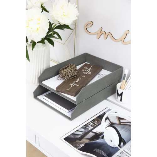 Stablebare brevkurver i A4 størrelse. Elegant og stilrent design som passer i de fleste hjem og kontor. Mulig å stable både vertikalt og forskjøvet. - Leveres i pakke med 2 brevkurver, og med 4 klips for enkel og stabil stabling - Med gummiføtter som beskytter underlaget og gir økt stabilitet - Laget av returpapp og kledd med papirlaminat - Mål (BxDxH): 23x31x6cm
