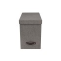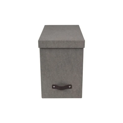 Fin og stilfull oppbevaringsboks med 8 hengemapper. Med lærhåndtak. Elegant design som passer i de fleste hjem og kontor. Hjelper deg å arkivere og sortere dine papirer, regninger, kvitteringer og andre dokumenter i opp til A4 format. - Inkluderer 8 mapper som kan merkes med egen etikett - Sterk konstruksjon som tåler å brukes hver dag - Laget av returpapp og kledd med canvas - Mål (BxDxH): 18,5x35x27cm