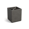 For oppbevaring av penner, blyanter, saks eller make-up-koster. Avtagbar innsats for inndeling av 4 rom. Gummiknotter på undersiden hindrer at holderen sklir, og beskytter samtidig underlaget. - Mål (LxDxH): 8,5x8,5x10 cm - Farge: grå