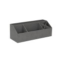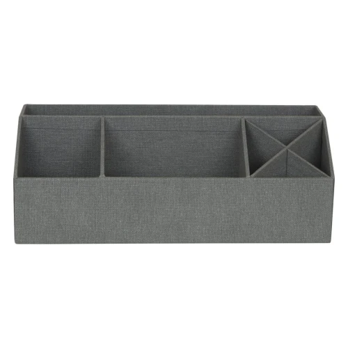 Stilren skrivebordsoppbevaring som hjelper deg å holde skrivebordet i orden. Passer også på andre steder man ønsker litt orden, eksempelvis til småsaker på kjøkkenet eller i gangen. Kan stables oppå Birger skuffekabinett. - Med gummiføtter som beskytter underlaget og gir økt stabilitet - Laget av returpapp med et ytterlag av canvas - 7 rom - Mål(BxDxH):33x12,5x12,5cm