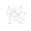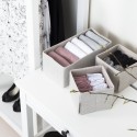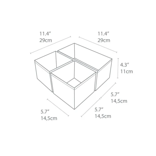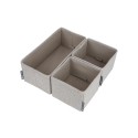 Praktisk suffeoppbevaring for å unngå rot i skuffene og garderobehyllene. Perfekt for å organisere belter, undertøy eller tilbehør, og holde orden og oversikt. Sett med 1 rektangulær og 2 kvadratiske bokser. Brettes enkelt sammen når den ikke er i bruk for å ta så lite plass som mulig. - Laget i sterk og kraftig polyester - Mål (BxDxH): Small (x2) 14,5x14,5x11 cm - Mål (BxDxH): Large (x1) 29x14,5x11 cm